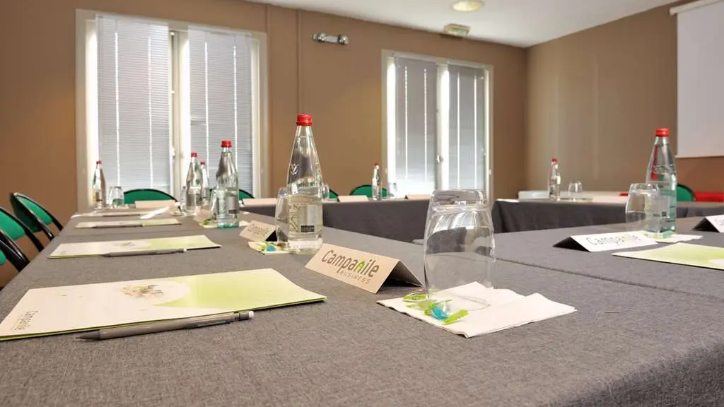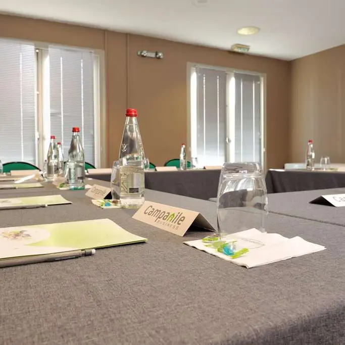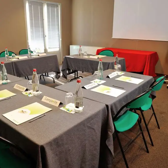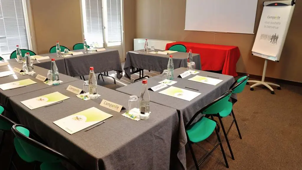 L’hôtel Campanile de Bourg-en-Bresse à Viriat est en mesure d’accueillir les groupes pour tous types événements. Que vous organisiez une rencontre sportive ou une journée d’étude, notre salle de réunion et le salon attenant vous offrent un espace accueillant et convivial. Climatisée et dotée de portes-fenêtres, la salle est équipée d’un écran, d’un paperboard, et d’un vidéo projecteur ou d’un rétro projecteur sur demande.