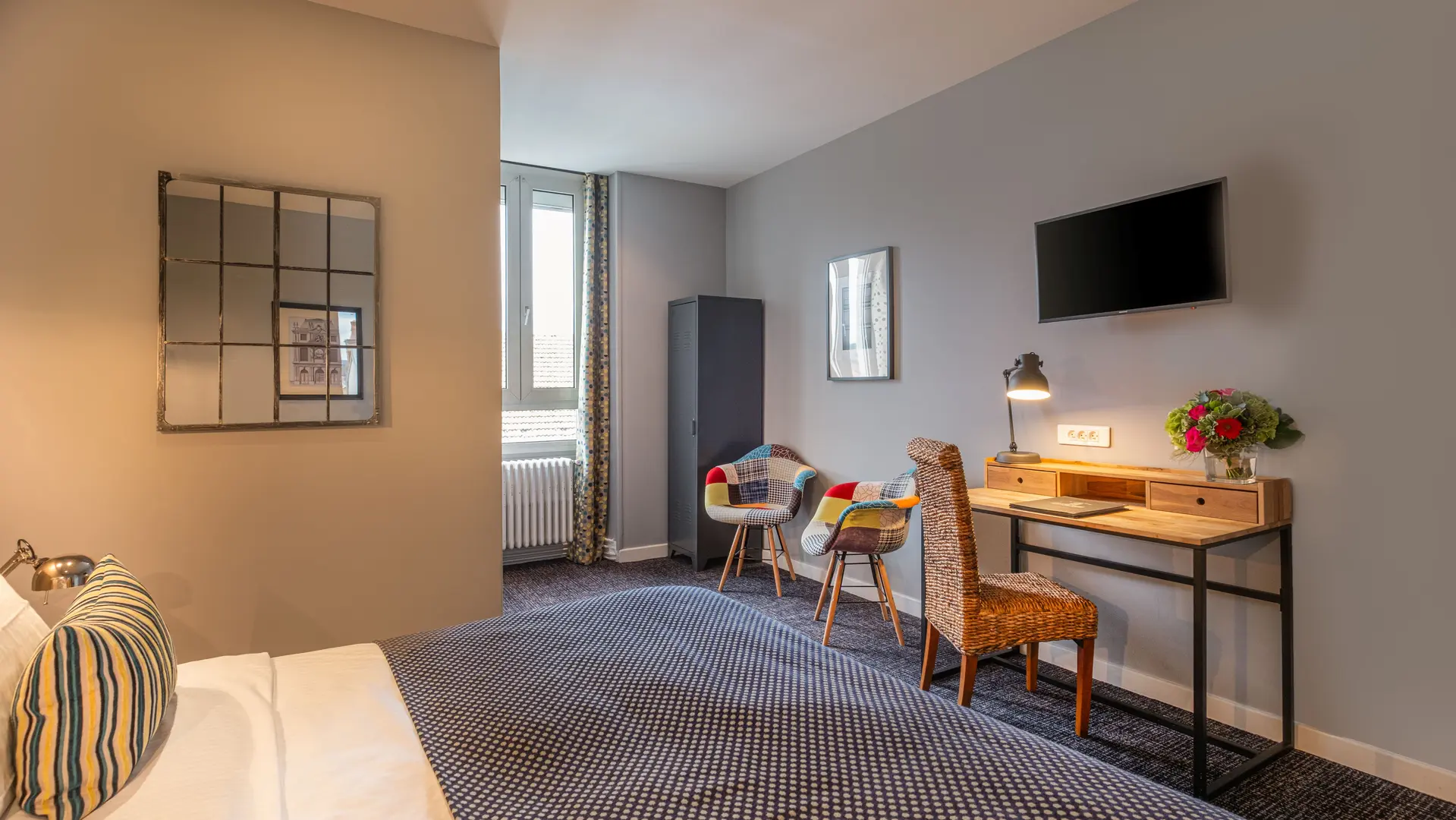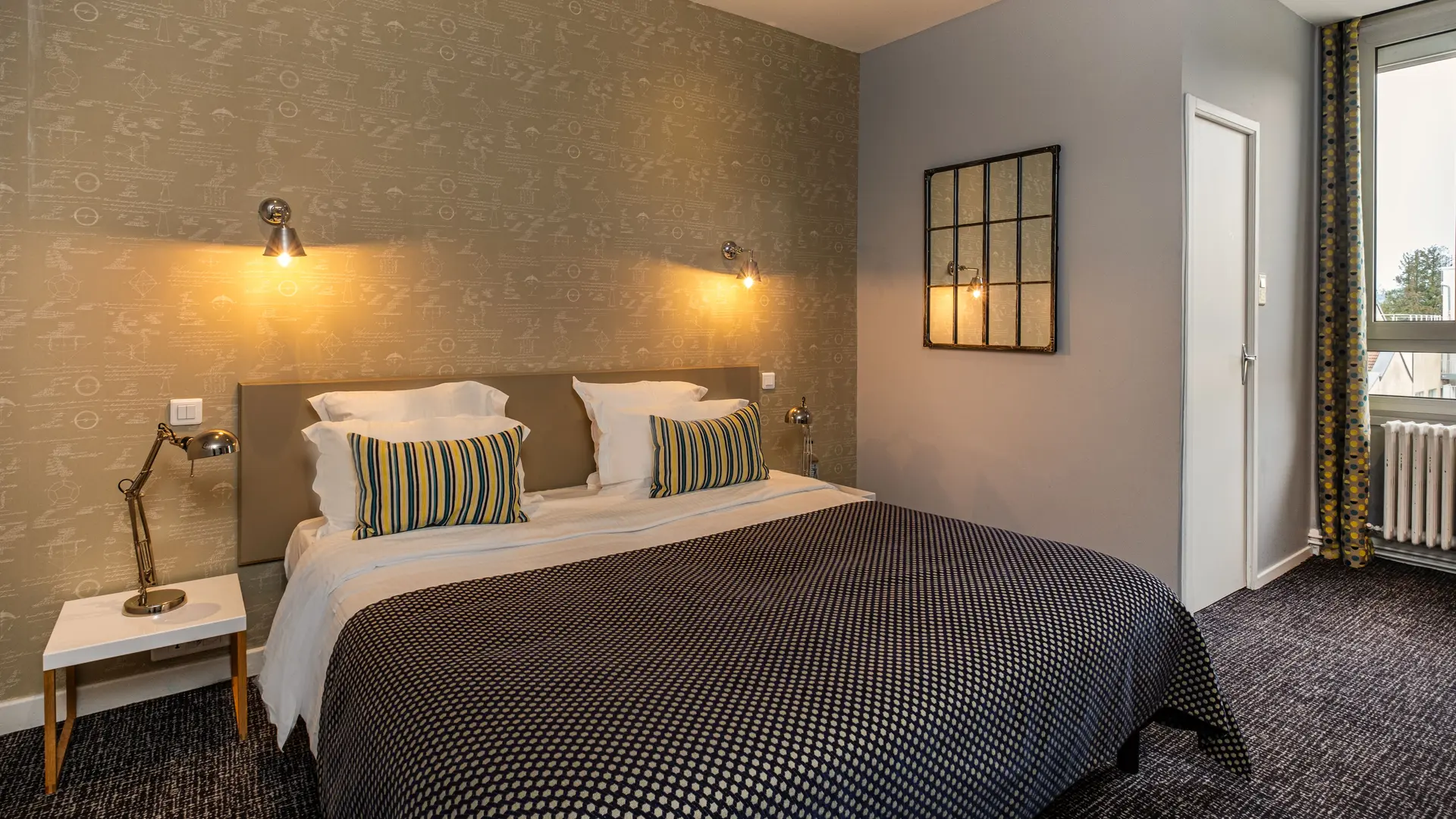 L'équipe du Nouvel Hôtel sera heureuse de vous accueillir au Nouvel Hôtel & Appartements à Oyonnax, situé au centre-ville, à 150 mètres de la gare et à 350 mètres de Valexpo. Vous trouverez à proximité toutes commodités et restauration. Venez découvrir cette demeure de caractère composée de 31 chambres tout confort, entièrement rénovées et Climatisées, avec ascenseur desservant les 3 étages ainsi que 6 appartements. Pour votre confort, les petits déjeuners sont servis en salle ou en chambre. Un garage privé fermé et couvert avec 2 prises de rechargement électrique est mis à votre disposition.